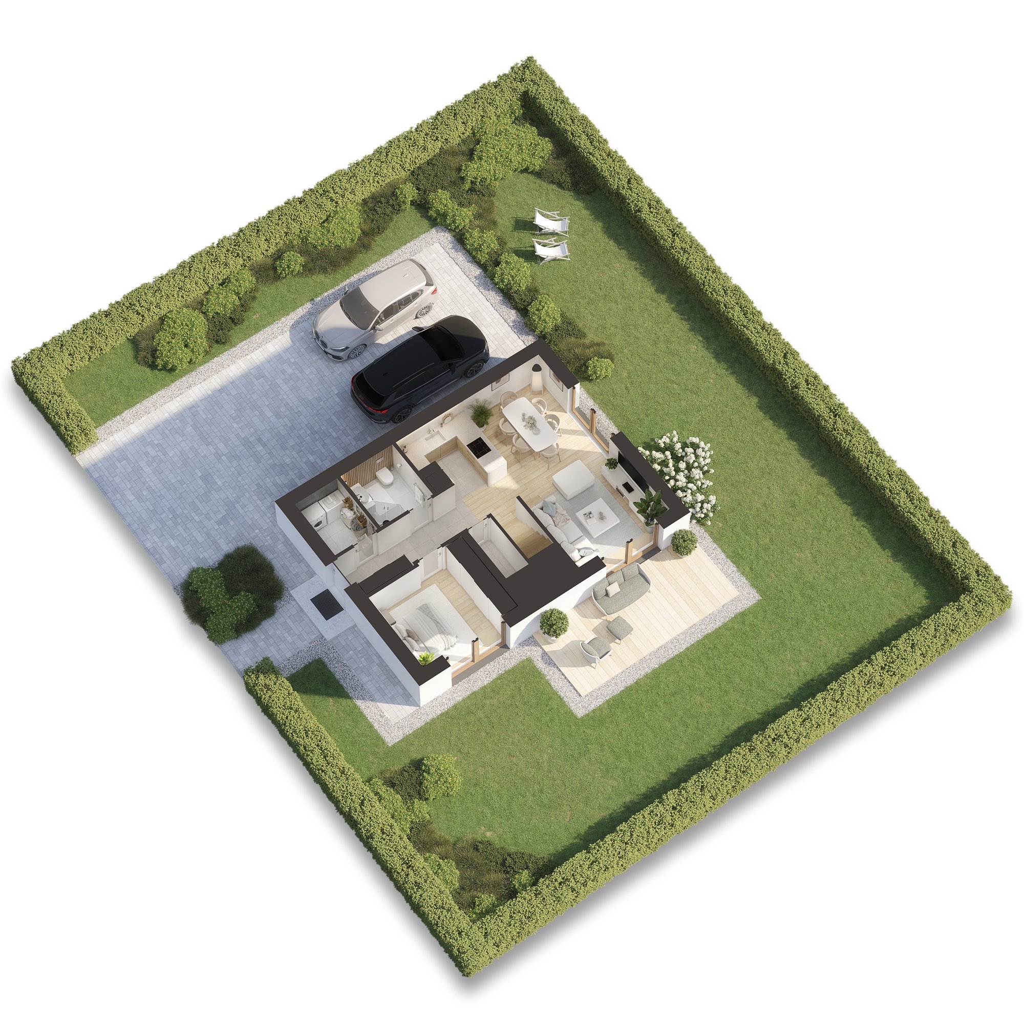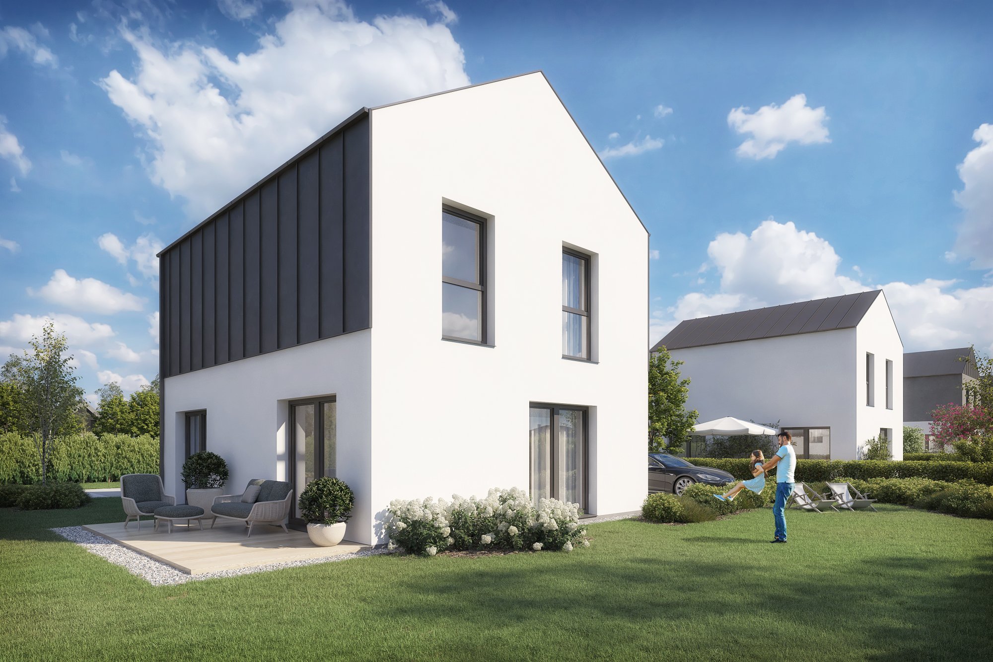 Nowoczesna bryła, przemyślane układy i duże przeszklenia to gwarancja wygody i światła we wnętrzach. Prywatny ogród daje przestrzeń na relaks i rodzinny czas.